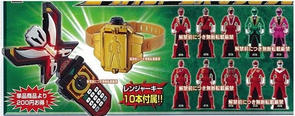 Mobirates, GoukaiBuckle and Ranger Keys (sold seperately but also as a DX Ranger Key Set. Keys included are GoukaiRed, ShinkenRed, Go-OnRed (Mobirates), GoukaiGreen, GoukaiPink (GoukaiBuckle), GekiRed, DekaRed, MagiRed, GaoRed, VulEagle (Key Set 1)