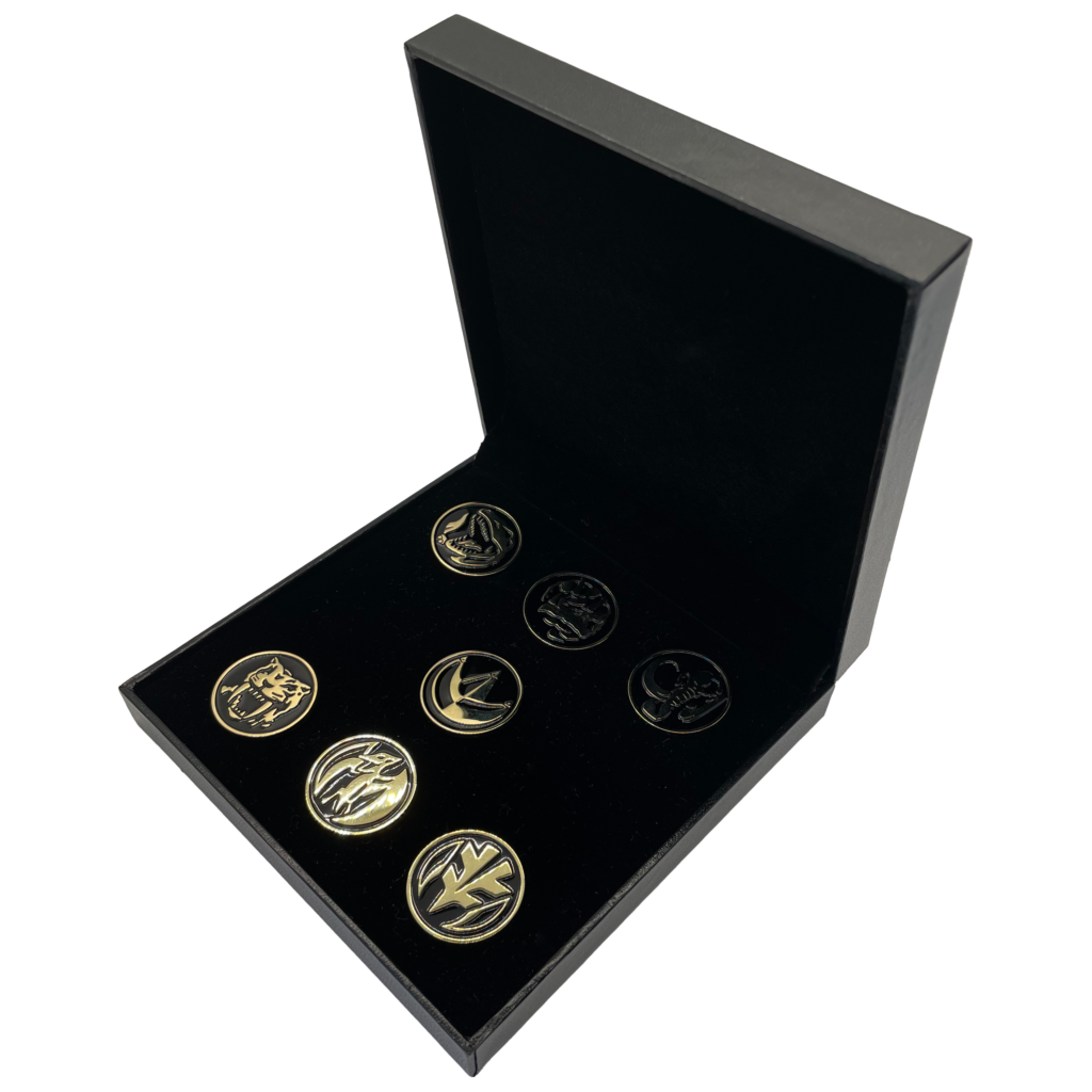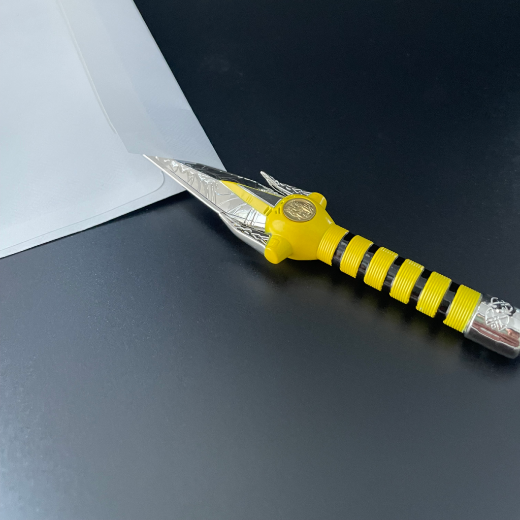 They have revealed two exclusives: a 24K Gold Plated Pin Set for the seven Power Coins from Mighty Morphin’ Power Rangers and a metal 5-inch letter opener modeled after the Yellow Ranger’s Power Dagger!