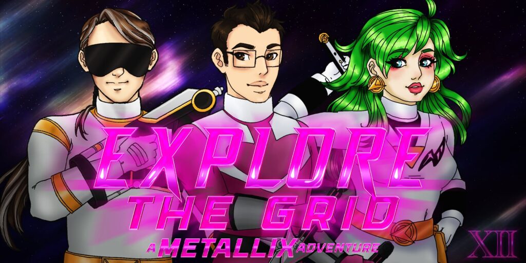 In our 12th Anniversary Special, Glitchy has been captured by Prince Midnight—Austin’s evil counterpart from the Mirror Dimension! Determined to save their robotic friend, The Grid Rangers Metallix set out on an adventure to find four Starlight Crystals and the Starlight Scepter—a mighty weapon that, when combined with the crystals, can destroy anything in its path. The trio will explore various planets (and times) in an effort to rescue Glitchy before it’s too late!