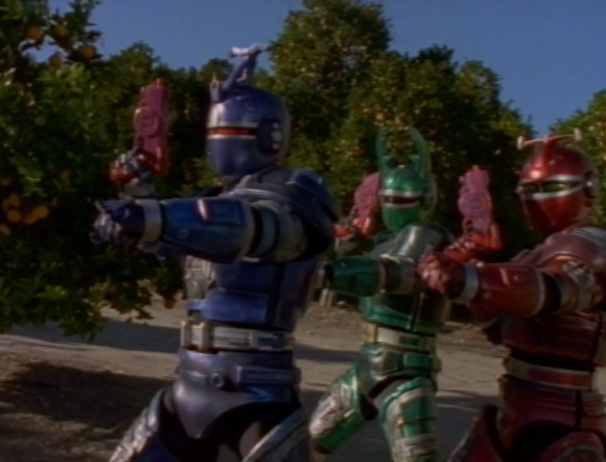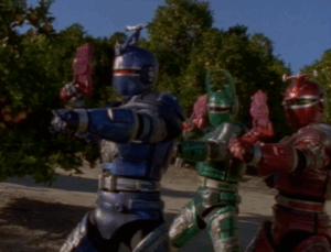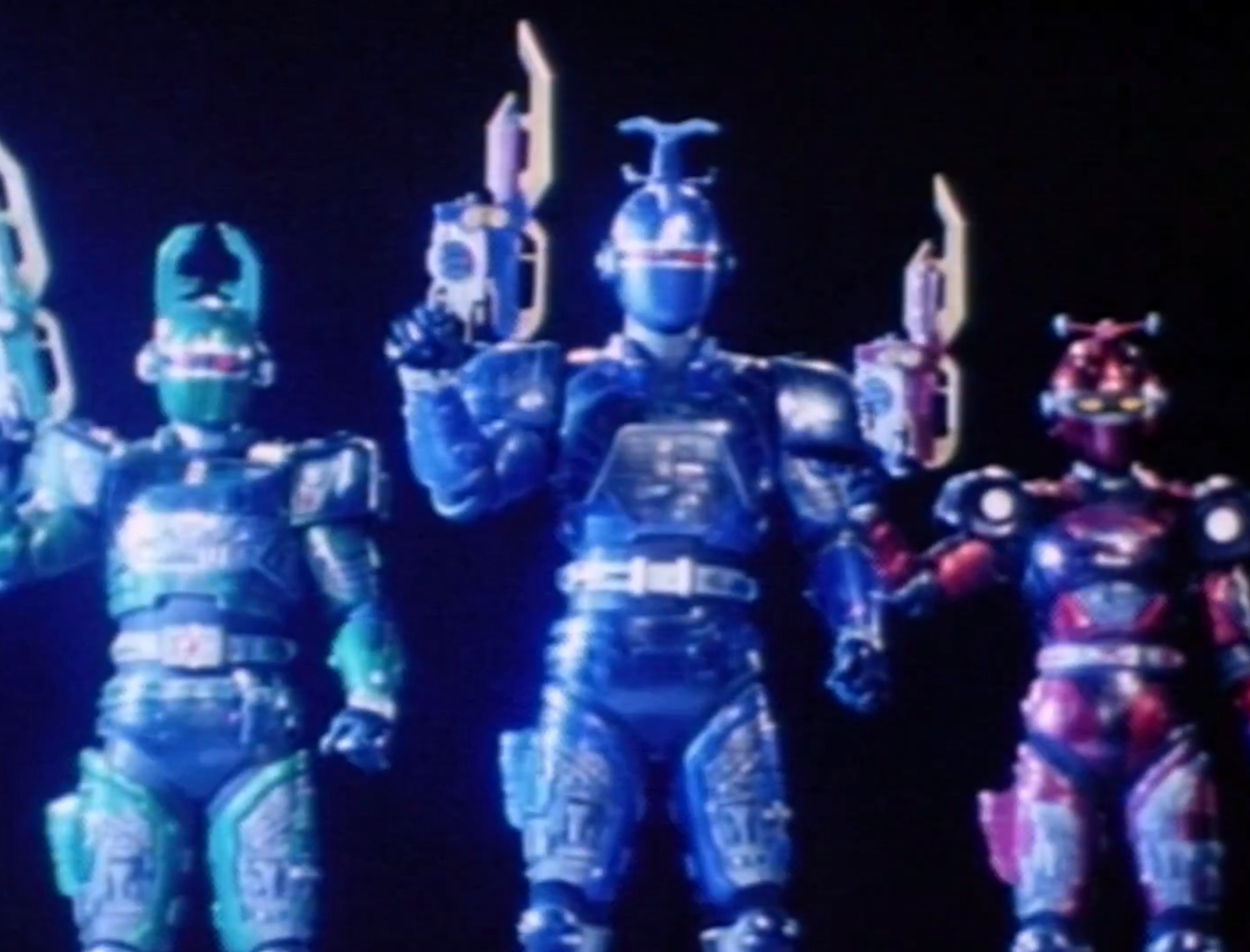 (Blue Stinger Beetleborg, Green Hunter Beetleborg & Red Striker Beetleborg)