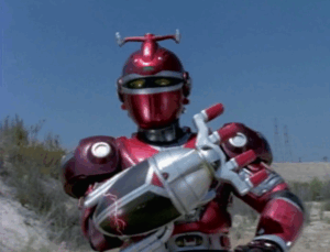 The Thunder Stinger is a red & white bazooka weapon used by the Blue Stinger Beetleborg. It is also used by the Blue Stinger Beetleborg to transform into the Mega Blue Beetleborg.