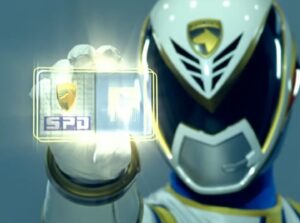 Sam carries around a futuristic badge to prove his identity as an SPD Officer to the B-Squad Rangers.