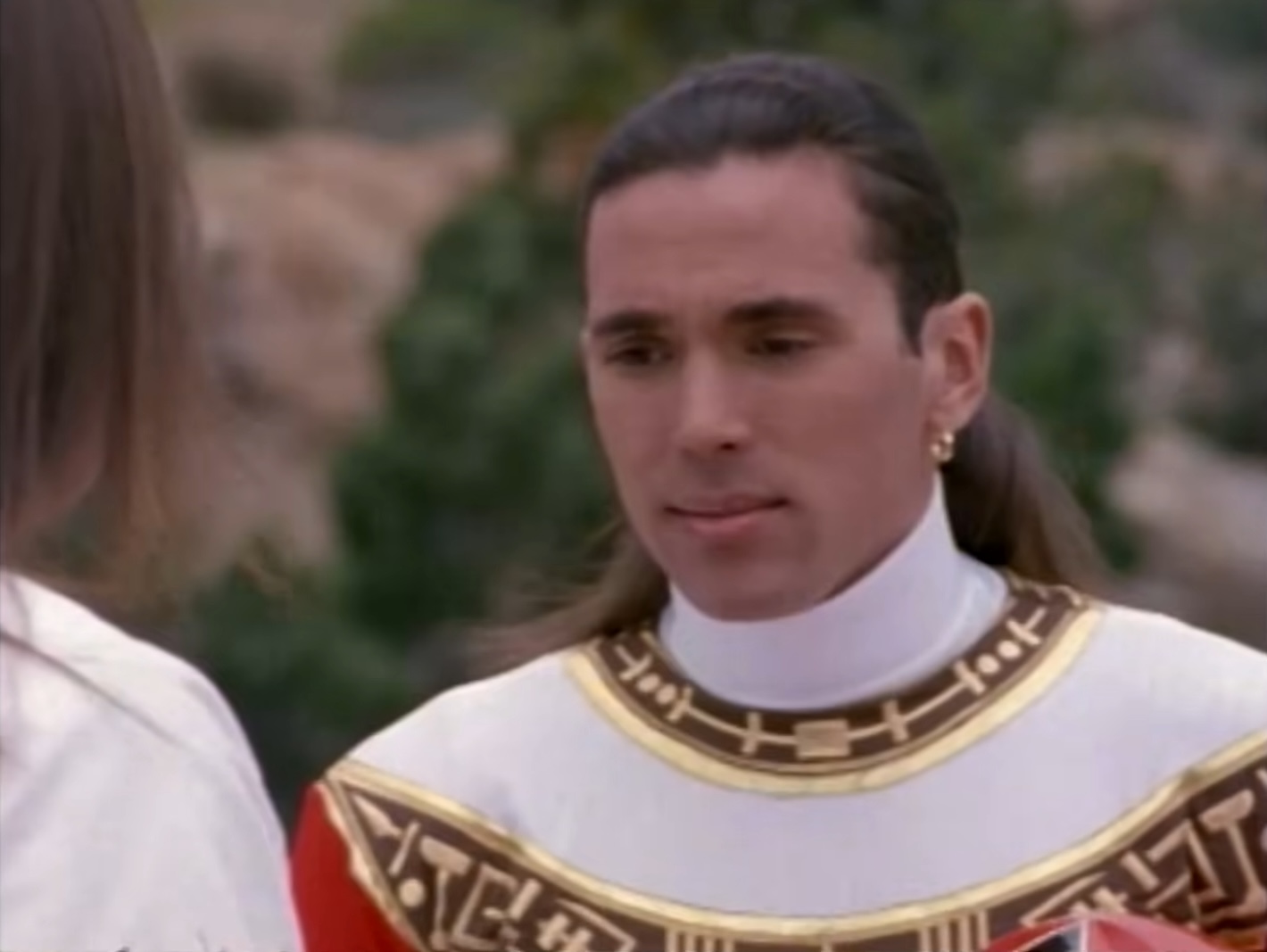 Tommy Oliver goes on a quest to a Native American Tribe to retrieve the Red Zeo Subcrystal after his Falcon Ninja Coin is destroyed by Rita & Zedd and becomes the Red Zeo Ranger. He also obtains half on an arrowhead, which leads him to learn he has a half brother, David Trueheart. After Kimberly Hart breaks up with him through a letter, he starts a relationship with Katherine Hillard, the Pink Zeo Ranger.