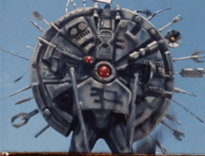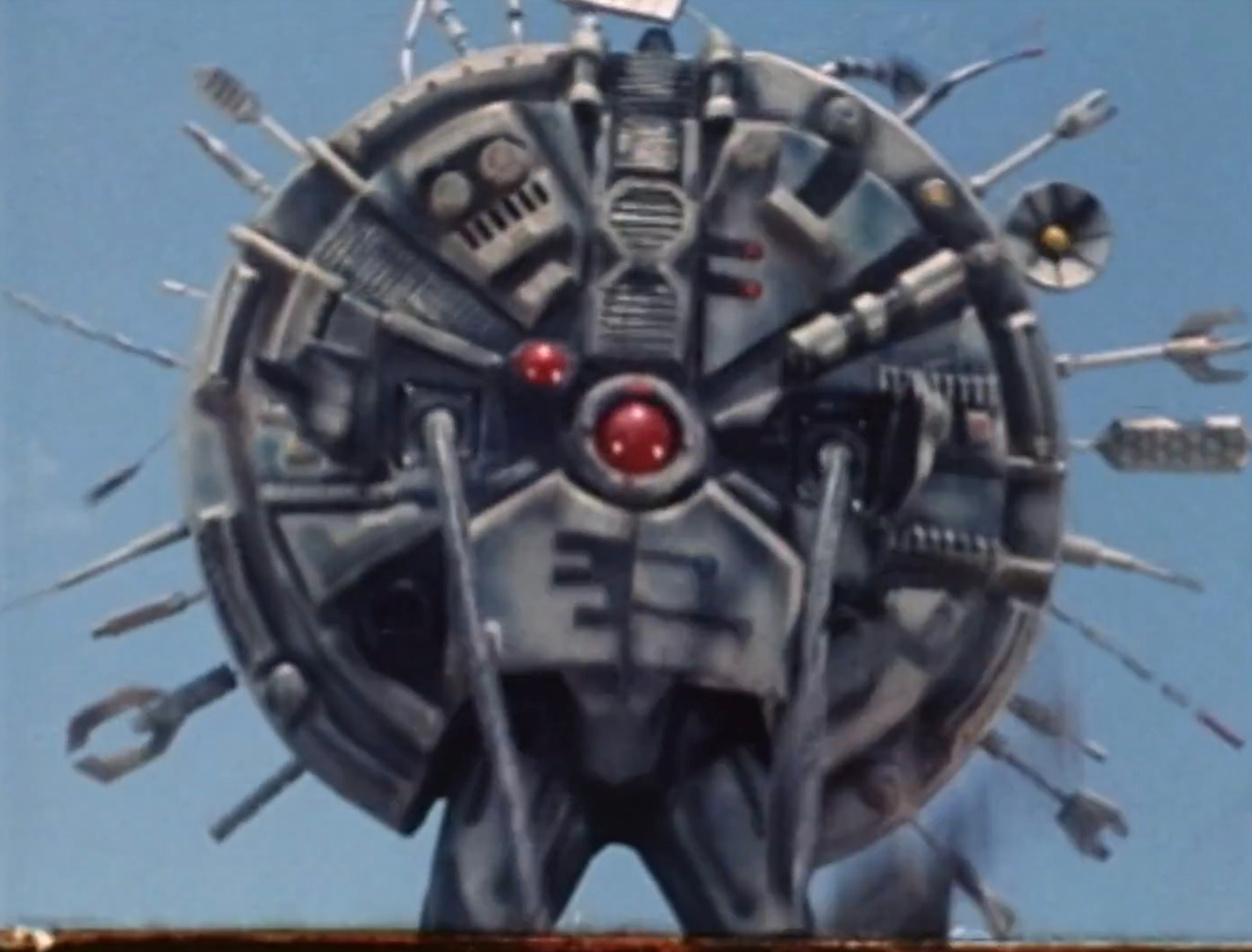 Drillbot is a drill-themed robotic virtual warrior that is recruited by General Ivar to obtain a virtual disc of a pollution-free engine created by Ulysses T. Pointdexter. He uses a bus filled with children to lure JB Reese into a fight, using his drill power and and army of Skugs to steal and attempt to dismantle the Sky Cycle. After rescuing the children and obtaining the Sky Cycle, JB & Kaitlin fight Drillbot, destroying him with a Laser Lance Command on the Sky Cycle.