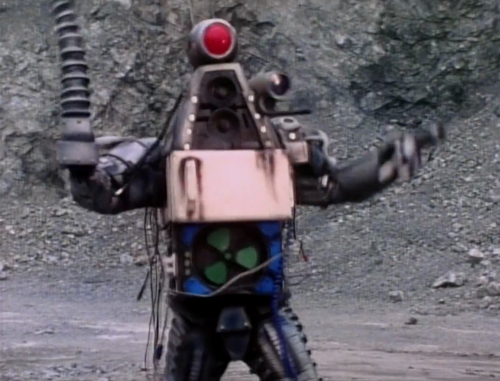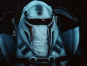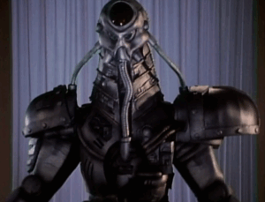 The Trooper Terimator is a robot created by Colonel Icebot to be the ultimate fighting machine against the VR Troopers. He is first used to show off his skills by taking on Grimlord’s Virtual Troops. He is then used to fight Ryan Steele after some Skugs kidnap some puppies as bait for him to enter Virtual Reality. Ryan has a hard time with the Trooper Terminator until he is able to distract him, destroying the robot by punching his head off his body.