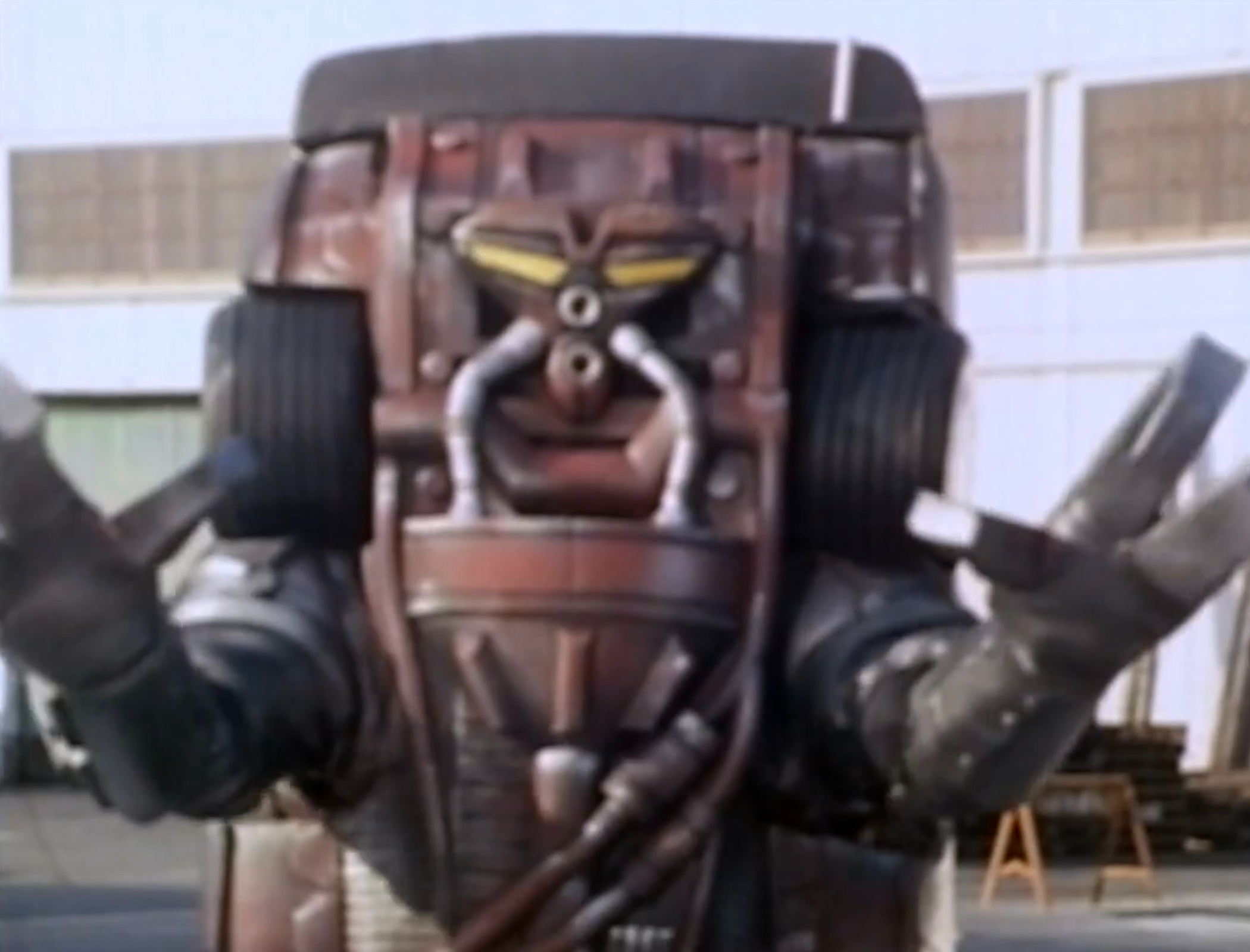 Hammerbot is the Decimator’s chosen champion of the Robot Corp that successfully beats Blade for the opportunity to fight Ryan Steele. He’s able to gain the upper hand against Ryan with his giant hammer until Ryan is able to take his hammer, sparing his life due to his honor.