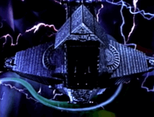The Virtual Battleship is the lead air fighter in aerial fights against the VR Troopers.