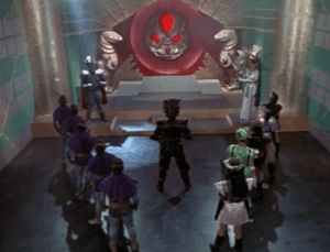 Grimlord is a power hungry Virtual Warlord that somehow gained access to many virtual warriors to follow him, including the denizens of the Virtual Dungeon, General Ivar & Colonel Icebot. Grimlord desires complete rule over both realities, being preventing in doing so by the VR Troopers. After dealing with VR Troopers for a year, Grimlord decides to forcibly steal knowledge from Tyler Steele and using an Energy Prism to create the source of this stolen knowledge, Oraclon, a female attendant named Despera, a field command Doom Master, a group of femme fatales called the Vixens and upgraded versions of his foot soldiers, Ultra Skugs. He also moves his base of operations to the Virtual Dark Fortress, standing among his followers rather than sitting on a throne like he did in the Virtual Dungeon.
